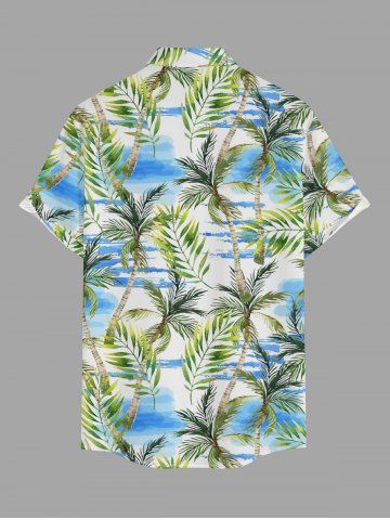 Plus Size Coconut Tree Sea Print Buttons Pocket Hawaii Shirt For Men - White - S