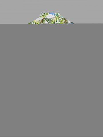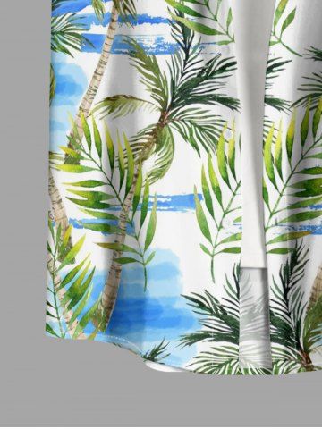 Plus Size Coconut Tree Sea Print Buttons Pocket Hawaii Shirt For Men - White - L