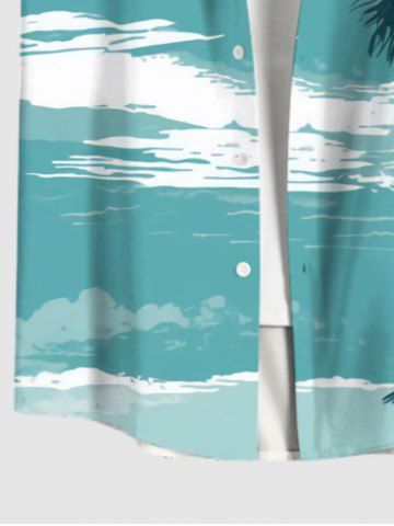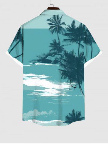 Plus Size Coconut Tree Sea Print Hawaii Button Pocket Shirt For Men - Green - Xl