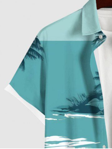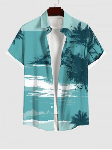 Short Sleeves Shirts > Plus Size Coconut Tree Sea Print Hawaii Button Pocket Shirt For Men