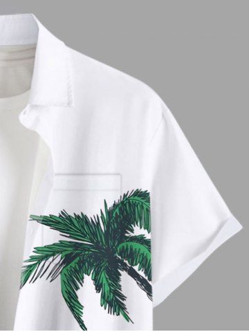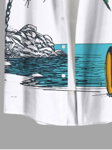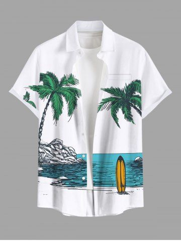 Plus Size Coconut Tree Sea Print Hawaii Button Pocket Shirt For Men - White - Xl