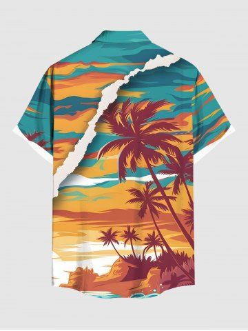 Short Sleeves Shirts > Plus Size Coconut Tree Sea Print Hawaii Button Pocket Shirt For Men