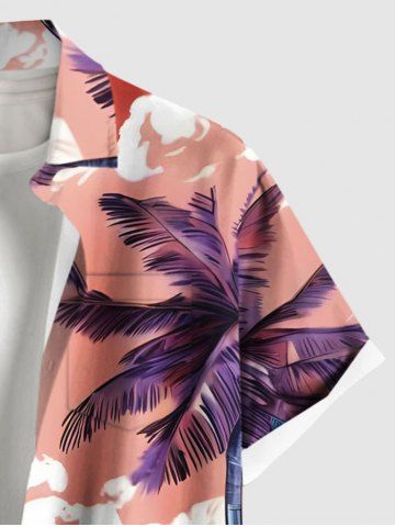 Short Sleeves Shirts > Plus Size Coconut Tree Sea Sailboat Mountain Cloud Print Hawaii Button Pocket Shirt For Men