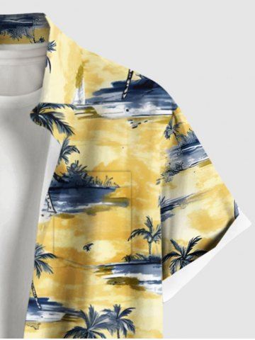 Plus Size Coconut Tree Sea Sailboat Print Hawaii Cruise Button Pocket Shirt For Men - Yellow - 6xl