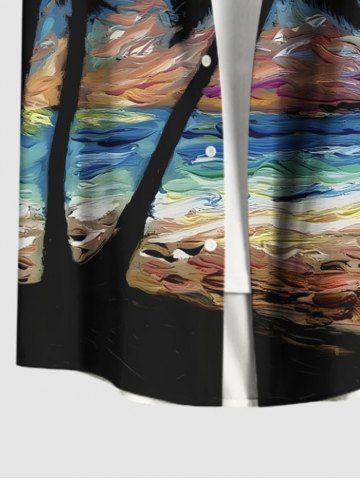 Short Sleeves Shirts > Plus Size Coconut Tree Sea Spiral Painting Print Hawaii Button Pocket Shirt For Men