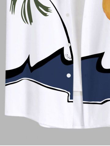 Plus Size Coconut Tree Sea Sun Colorblock Print Buttons Pocket Hawaii Shirt For Men - White - M