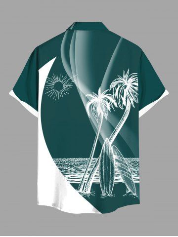 Plus Size Coconut Tree Sea Sun Curve Print Hawaii Button Pocket Shirt For Men - Green - 5xl