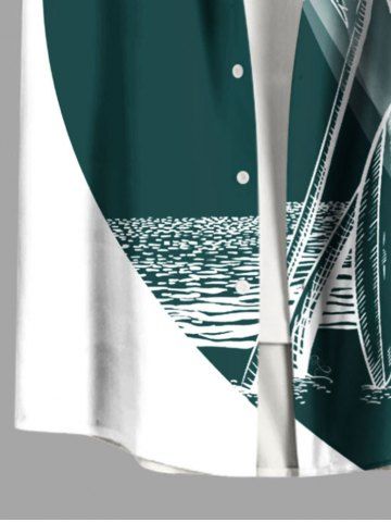 Plus Size Coconut Tree Sea Sun Curve Print Hawaii Button Pocket Shirt For Men - Green - 6xl