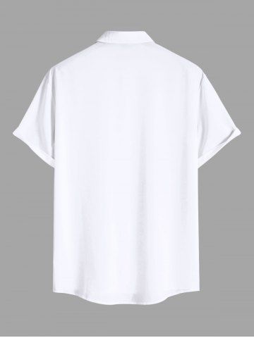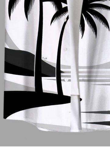 Plus Size Coconut Tree Sea Sun Print Hawaii Button Pocket Shirt For Men - White - 3xl