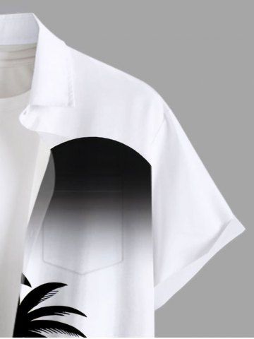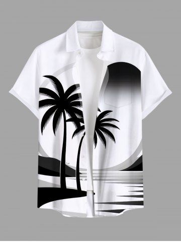 Plus Size Coconut Tree Sea Sun Print Hawaii Button Pocket Shirt For Men - White - 4xl