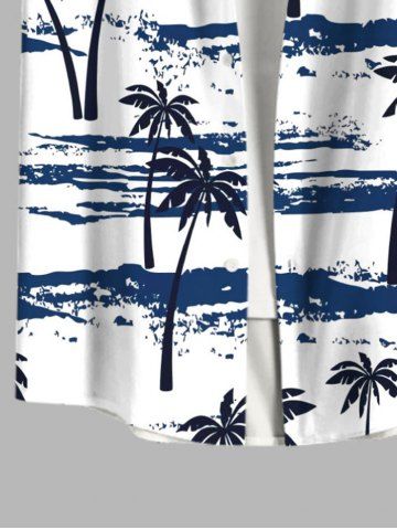 Plus Size Coconut Tree Sea Tie Dye Print Buttons Pocket Hawaii Shirt For Men - White - Xl