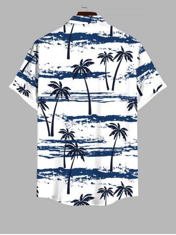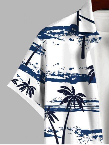 Plus Size Coconut Tree Sea Tie Dye Print Buttons Pocket Hawaii Shirt For Men - White - 3xl