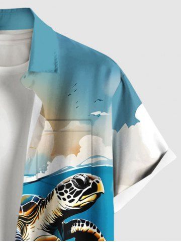 Short Sleeves Shirts > Plus Size Coconut Tree Sea Turtle Sun Cloud Ombre Sky Print Hawaii Sea Creatures Shirt For Men