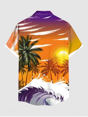 Short Sleeves Shirts > Plus Size Coconut Tree Sea Wave Sunset Ombre Sky Print Hawaii Button Pocket Shirt For Men