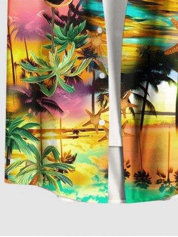 Plus Size Coconut Tree Sea Waves Beach Starfish Anchor Print Hawaii Cruise Button Pocket Shirt For Men - Yellow - S