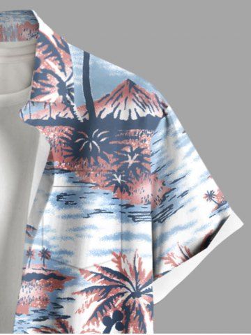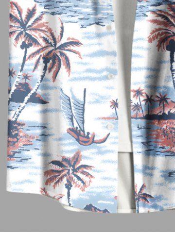 Short Sleeves Shirts > Plus Size Coconut Tree Sea Waves Boat Print Buttons Pocket Hawaii Shirt For Men
