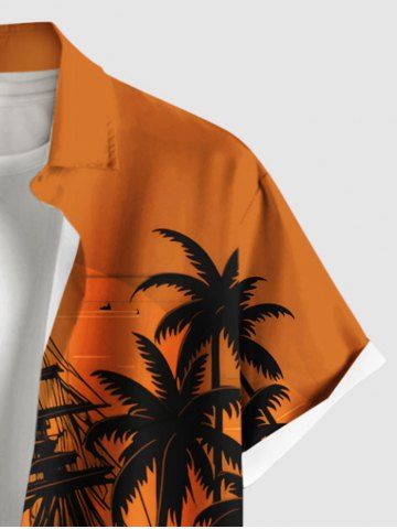 Plus Size Coconut Tree Sea Waves Boat Sun Print Buttons Pocket Hawaii Shirt For Men - Orange - 4xl