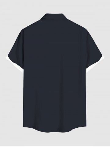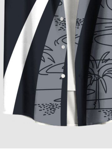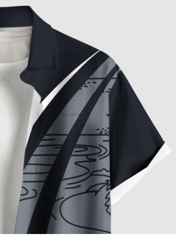 Plus Size Coconut Tree Sea Waves Colorblock Print Buttons Pocket Hawaii Shirt For Men - Black - 2xl