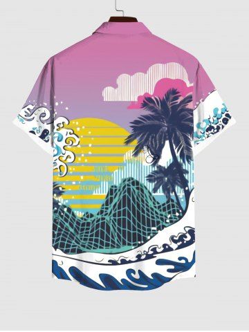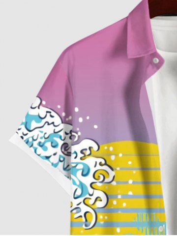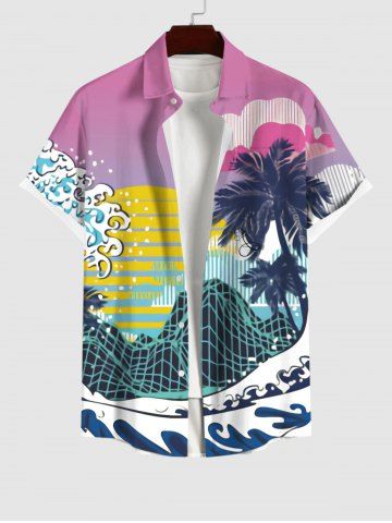 Short Sleeves Shirts > Plus Size Coconut Tree Sea Waves Moon Mountain Cloud Striped Print Hawaii Ombre Button Pocket Shirt
