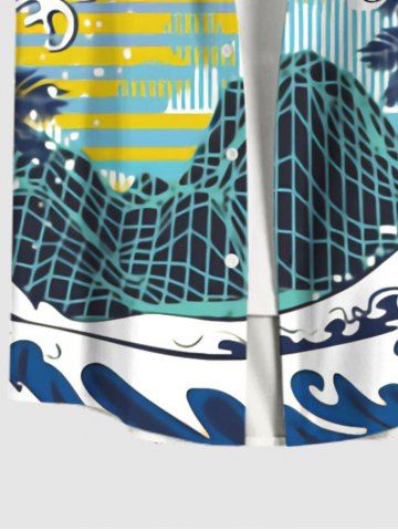 Plus Size Coconut Tree Sea Waves Moon Mountain Cloud Striped Print Hawaii Ombre Button Pocket Shirt - Multi-a - 4xl
