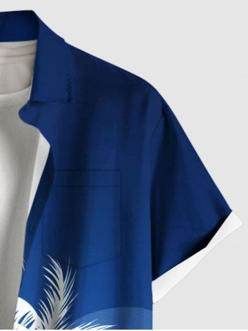 Plus Size Coconut Tree Sea Waves Paint Splatter Print Buttons Pocket Hawaii Shirt For Men - Blue - 3xl