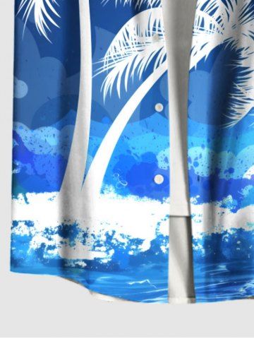 Plus Size Coconut Tree Sea Waves Paint Splatter Print Buttons Pocket Hawaii Shirt For Men - Blue - 4xl
