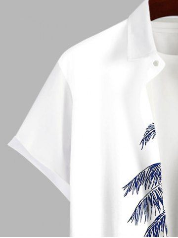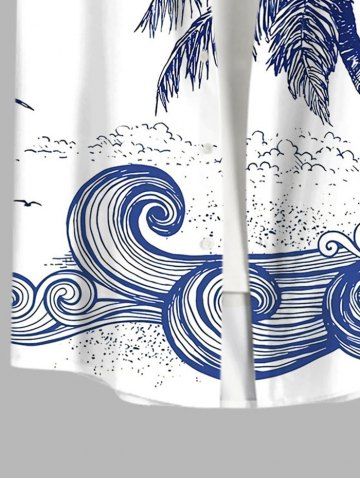 Plus Size Coconut Tree Sea Waves Print Buttons Pocket Hawaii Shirt For Men - White - 4xl