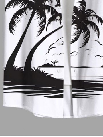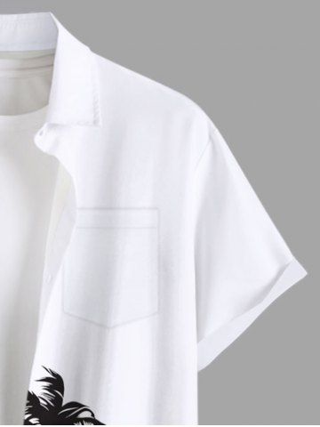 Plus Size Coconut Tree Sea Waves Print Buttons Pocket Hawaii Shirt For Men - White - 6xl
