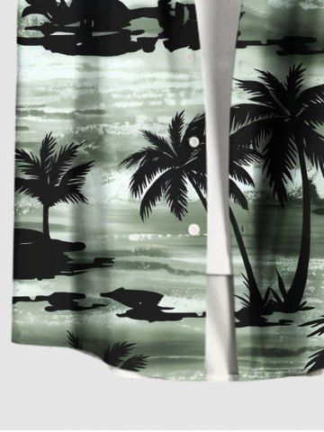 Plus Size Coconut Tree Sea Waves Print Buttons Pocket Hawaii Shirt For Men - Green - Xl