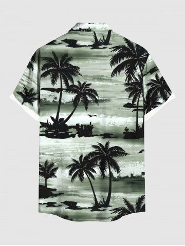 Plus Size Coconut Tree Sea Waves Print Buttons Pocket Hawaii Shirt For Men - Green - 5xl