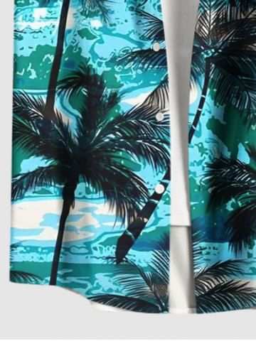 Plus Size Coconut Tree Sea Waves Print Buttons Pocket Hawaii Shirt For Men - Green - 2xl