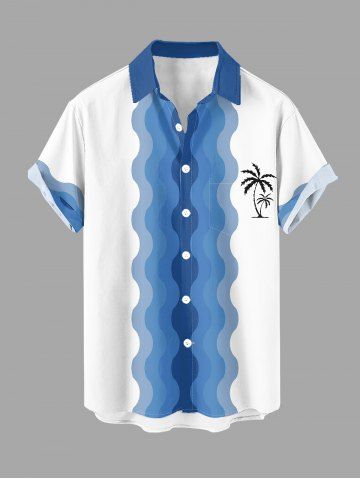 Short Sleeves Shirts > Plus Size Coconut Tree Sea Waves Print Buttons Pocket Hawaii Shirt For Men