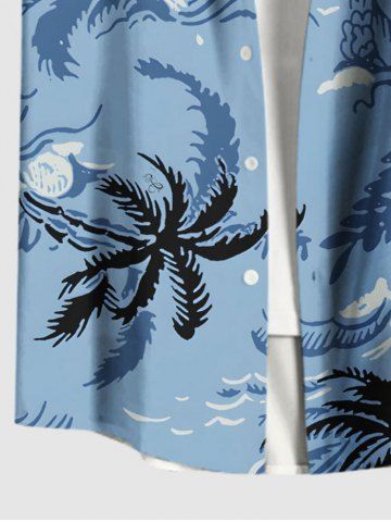 Plus Size Coconut Tree Sea Waves Print Hawaii Button Pocket Shirt For Men - Sky Blue - S