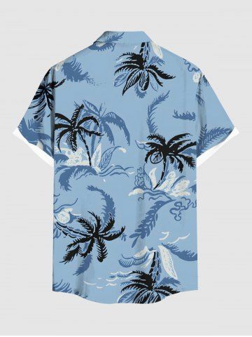 Plus Size Coconut Tree Sea Waves Print Hawaii Button Pocket Shirt For Men - Sky Blue - L