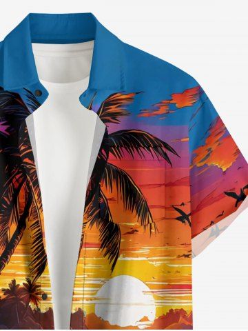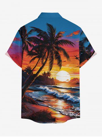 Short Sleeves Shirts > Plus Size Coconut Tree Sea Waves Sun Print Buttons Pocket Hawaii Shirt For Men