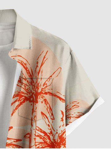 Plus Size Coconut Tree Sea Waves Sun Print Hawaii Button Pocket Shirt For Men - Light Gray - S