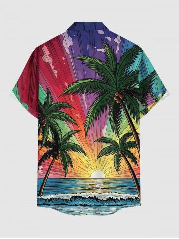 Plus Size Coconut Tree Sea Waves Sun Print Hawaii Button Pocket Shirt For Men - Multi - Xl