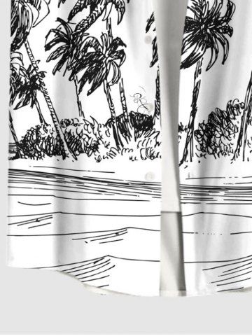 Plus Size Coconut Tree Sea Wind Colorblock Print Buttons Pocket Hawaii Shirt For Men - Black - Xl