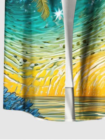 Plus Size Coconut Tree Seascape Beach Oil Painting Print Buttons Pocket Hawaii Shirt For Men - Yellow - 4xl