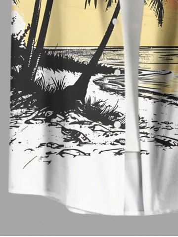 Plus Size Coconut Tree Seascape Bird Ombre Colorblock Print Buttons Pocket Hawaii Shirt For Men - White - M