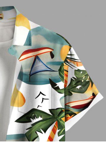 Short Sleeves Shirts > Plus Size Coconut Tree Seascape Bird Print Hawaii Button Pocket Shirt For Men
