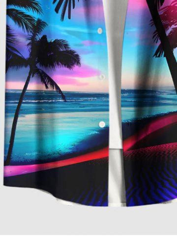 Plus Size Coconut Tree Seascape Cloud Print Buttons Pocket Hawaii Shirt For Men - Purple - 6xl
