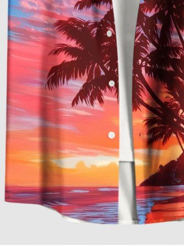 Plus Size Coconut Tree Seascape Colorful Sky Cloud Print Buttons Pocket Hawaii Shirt For Men - Light Pink - 3xl