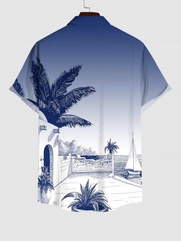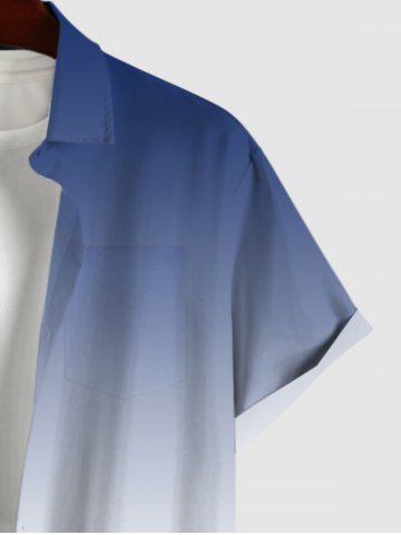 Plus Size Coconut Tree Seascape Dip Dye Print Hawaii Ombre Button Pocket Shirt For Men - Multi-a - 2xl