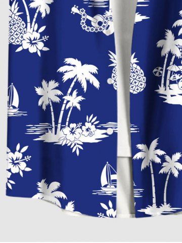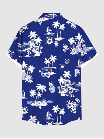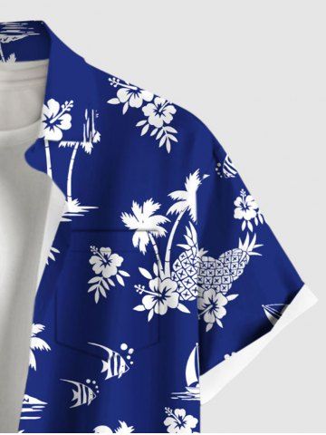 Plus Size Coconut Tree Seascape Flowers Pineapple Print Buttons Pocket Hawaii Shirt For Men - Blue - 6xl