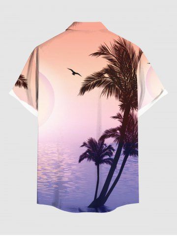 Plus Size Coconut Tree Seascape Ombre Print Buttons Pocket Hawaii Shirt For Men - Light Pink - 3xl