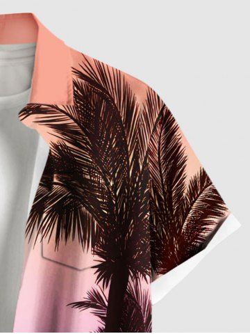 Plus Size Coconut Tree Seascape Ombre Print Buttons Pocket Hawaii Shirt For Men - Light Pink - 5xl