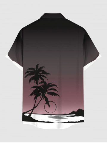 Plus Size Coconut Tree Seascape Ombre Print Buttons Pocket Hawaii Shirt For Men - Black - S