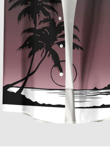 Plus Size Coconut Tree Seascape Ombre Print Buttons Pocket Hawaii Shirt For Men - Black - 6xl