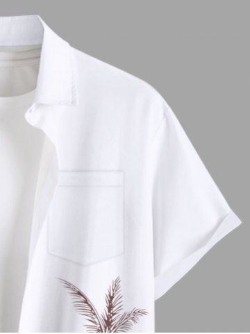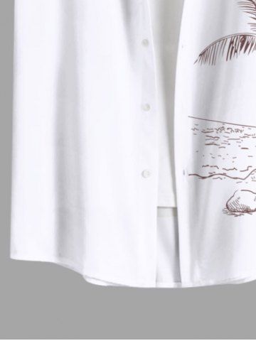 Plus Size Coconut Tree Seascape Print Buttons Pocket Hawaii Shirt For Men - White - 5xl